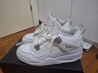 Scarpe Jordan 4 in colore bianco. - Design iconico. - Tomaia in pelle. - Dettagli in mesh.