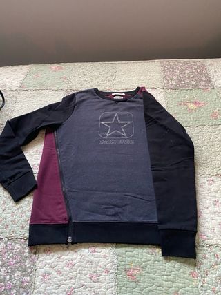 Felpa Converse All Star da donna, con un design unico. Interno felpato - Colore principale grigio mélange. - Dettagli in bordeaux. - Maniche e parte posteriore in nero. - Zip laterale asimmetrica. - Logo Converse con stella sul davanti.