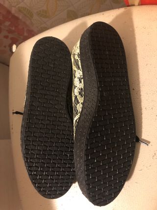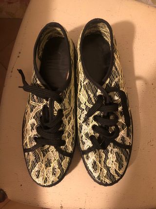 Scarpe da ginnastica con un design unico in pizzo. - Tomaia in pizzo giallo. - Dettagli neri. - Lacci neri. usate poche volte