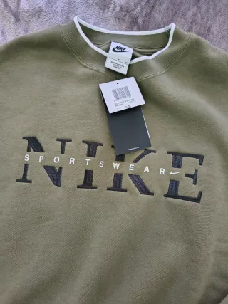 Felpa girocollo Nike nuova con etichetta. - Logo Nike Sportswear ricamato sul davanti. - Polsini e fondo a costine. - Collo a costine con dettaglio bianco.