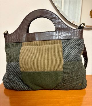 Borsa Carpisa con un design patchwork unico, perfetta per la stagione autunnale e invernale. - Manico in ecopelle effetto coccodrillo. - Patchwork di tessuti misti.
