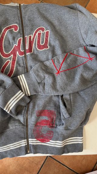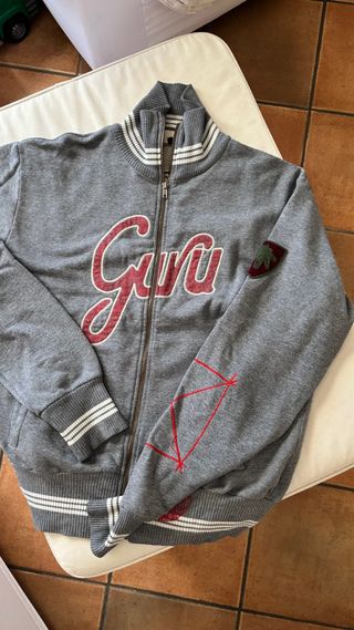 Felpa da uomo con zip del marchio Guru. Presenta dettagli a contrasto e un design sportivo. - Zip frontale. - Polsini e fondo a costine. - Logo sul petto.