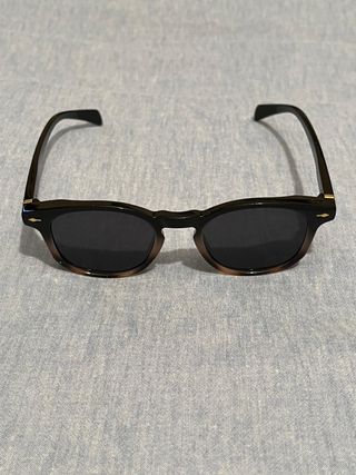 Occhiali da sole neri, leggermente maculati sul fumè sotto le lenti Certificati CE UV protection
