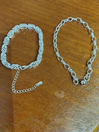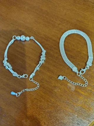 Set di due braccialetti da donna. - Braccialetto con cuore dorato. - Braccialetto con maglie argentate.