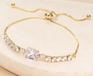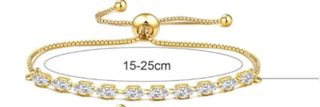 Elegante bracciale da donna con zirconi incastonati. - Design a tennis con pietre scintillanti. - Chiusura regolabile per una vestibilità perfetta. - Finitura dorata lucida.