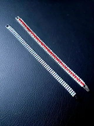 Elegante set di due bracciali tennis, perfetti per aggiungere un tocco di luce. - Un bracciale con zirconi bianchi. - Un bracciale con zirconi rossi.