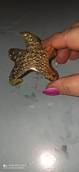 Elegante bracciale da donna con finitura dorata. - Design a forma di stella marina. - Superficie texturizzata con piccoli punti. - Stile unico e appariscente.