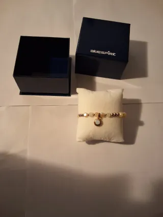 Elegante bracciale da donna, in buone condizioni, mai indossato. - Perle color beige e dorate, queste ultime presentano qualche segno di usura dati dal tempo. - Charm pendente centrale.