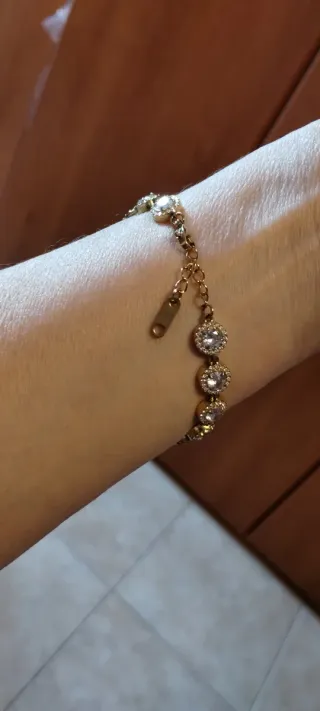 Elegante braccialetto da donna con finitura color oro e pietre bianche luminose. - Design con zirconi incastonati. - Chiusura sicura.