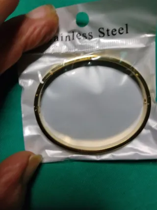 Set di due bracciali da donna. - Un bracciale è nuovo con cartellino. - Un bracciale è color oro con glitter è regolabile - Un bracciale è color argento con inserti ovali ed è elastico