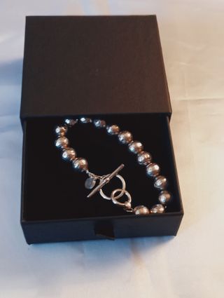 Bellissimo bracciale in argento con perle bianche e nere di onice. Materiale Principale: La catena del bracciale è in argento 925. Pietre: Presenta perle coltivate d'acqua dolce (bianche) e perle nere che sono onice. Stile: Il design incorpora la maglia a serpente (snake chain). Misura 19.5 cm In vendita su altre piattaforme online!
