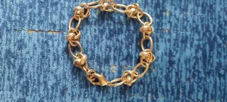 Elegante bracciale da donna con maglie ovali alternate a nodi decorativi, colore oro ottima bigiotteria francese, mai indossato. - Design a catena. - Chiusura a moschettone.
