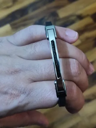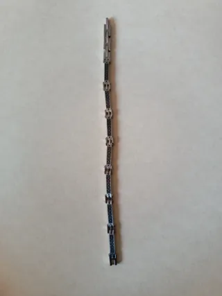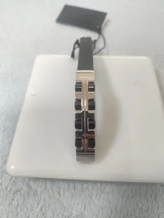 Elegante braccialetto da uomo, mai utilizzato. Braccialetto uomo mai utilizzato. ho anche altri gioielli nel mio profilo, ho sconti sui set. Per maggiori informazioni contattarmi. - Design moderno con inserti neri e finitura argentata. - Materiale resistente e durevole.