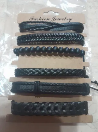 Set di quattro braccialetti in pelle per uomo. - Design intrecciato. - Chiusura con magnete. - Stile casual. Sono possibili spedizioni anche tramite Bizum e contrassegno.