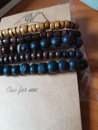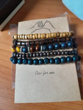 Set di braccialetti da uomo, perfetti per aggiungere un tocco di stile. - Cinque braccialetti inclusi. - Realizzati con perline in legno e pietra lavica. - Design boho-chic.