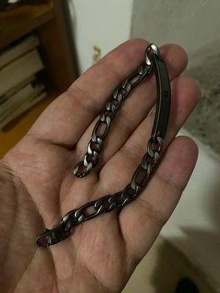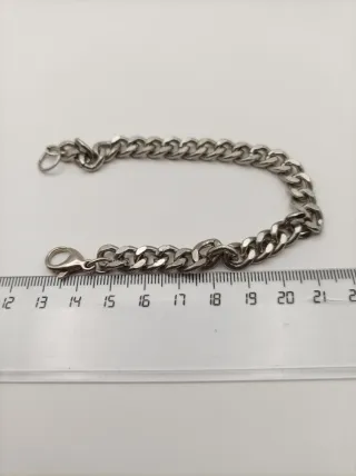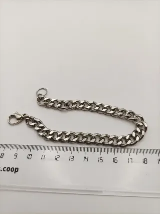 Bracciale in acciaio con maglie spesse, stile biker e motociclista. Design robusto e accattivante. Finitura lucida. Nuovo, mai indossato, è molto spesso per i miei gusti. Lo spedisco in una scatola di un altro bracciale Lotus, non è suo, ma è ben protetto. NON HA UN MARCHIO.