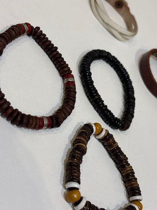 Set di braccialetti da uomo con diversi design in pelle. - Braccialetti intrecciati e con perline. - Chiusure regolabili.