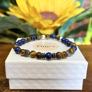 Bracciale uomo occhio di tigre e lapislazzuli 6mm