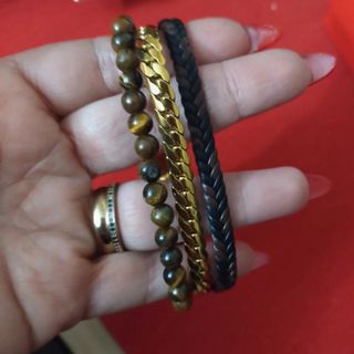Set di bracciali in acciaio e gomma. - Design moderno e versatile. - Chiusure a scatto sicure. - Dettagli in rilievo sulla gomma. Bracciali in cacciù gomma e inserti in acciaio Nuovi il prezzo e riferito al singolo Bracciale