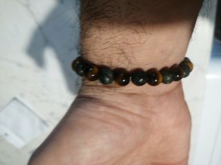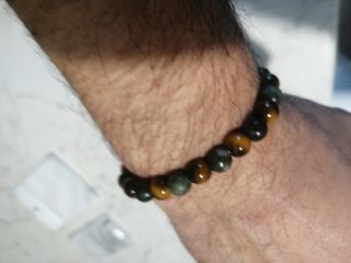 Elegante bracciale da uomo realizzato con pietre portafortuna. - Pietre naturali con sfumature di marrone e verde. - Design unisex adatto a ogni polso.