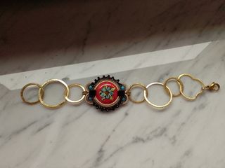 "Spedizione veloce max 24ore" Braccialetto in acciaio con diversi charm rossi e un grazioso ciondolo a cuore. indossato poche volte.buona vestibilità. Non ci sono imperfezioni. Spedisco solo per posta non incontro nessuno.