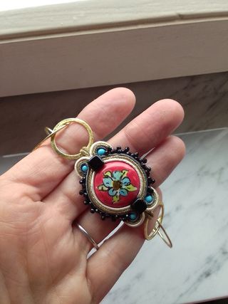 Mai indossato, braccialetto con dettaglio in porcellana dipinta a mano, con dettaglio in Soutache, acquistato dall'artigiana sicula elemi'soutache. Molto fine e adatto all'estate.