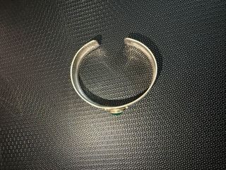 Elegante bracciale rigido aperto in argento 925. - Design con pietra centrale verde. - Dettagli intrecciati sui bordi.
