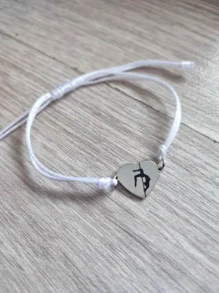 Delicato bracciale con ciondolo a forma di cuore, perfetto per gli appassionati di pole dance. Il design è semplice e moderno. - Ciondolo a forma di cuore con silhouette di pole dancer. - Cordino regolabile per adattarsi a qualsiasi polso.