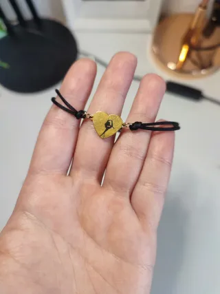 Bracciale con ciondolo a forma di cuore, perfetto per gli appassionati di pole dance. Il design è elegante e il cinturino in tessuto è regolabile per adattarsi a qualsiasi polso. - Ciondolo a forma di cuore con silhouette di pole dancer. - Cordino nero regolabile.