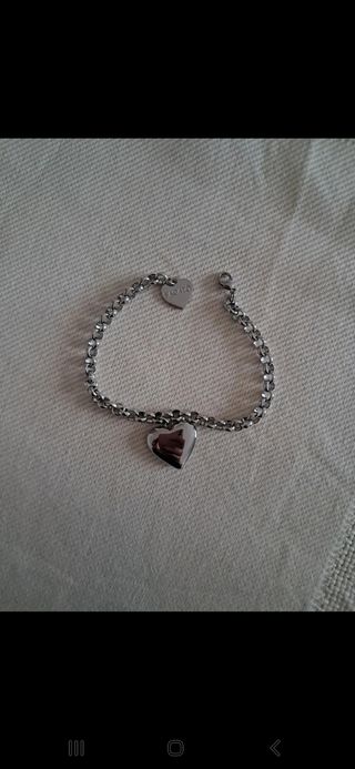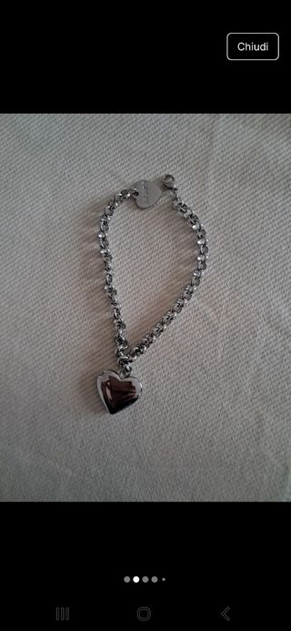 Bellissimo braccialetto in acciaio, con ciondolo a forma di cuore. - Bracciale a catena. - Chiusura a moschettone. - Ciondolo a forma di cuore con incisione '1♡'. - Un altro ciondolo rotondo.