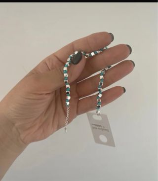 Elegante bracciale realizzato con perline singole. - Perline di colore blu e verde acqua. - Design a filo singolo.