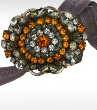 Elegante bracciale decorato con pietre. - Dettagli in pietre arancioni. - Elementi metallici color argento.
