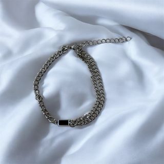 Elegante bracciale da uomo con un design moderno. - Catena in metallo argentato. - Dettaglio rettangolare nero centrale.