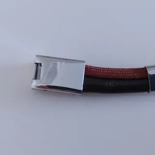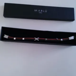 Elegante bracciale da uomo Marlù, realizzato con una combinazione di pelle marrone e dettagli in argento. - Design moderno con inserti metallici. - Chiusura sicura e pratica.