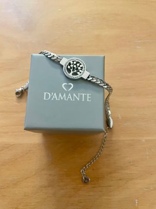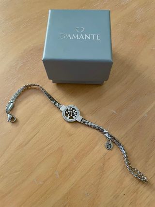 Elegante bracciale D'Amante con ciondolo a forma di albero della vita. - Ciondolo decorato con cristalli. - Maglia a catena lucida. - Chiusura a moschettone con catenella regolabile.