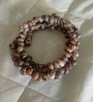 Bracciale realizzato con tante piccole conchiglie intrecciate. - Design unico e naturale. - Perfetto per un look estivo.