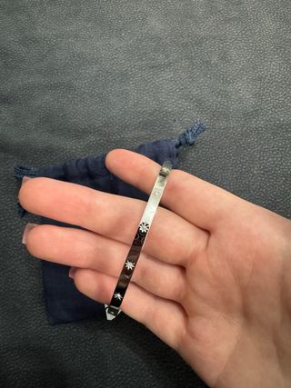 Elegante bracciale Stroili con una fila di strass scintillanti. - Design a fascia con finitura satinata. - Dettaglio di strass lungo la parte centrale. Taglia M. Indossato in pochissime occasioni, come nuovo.