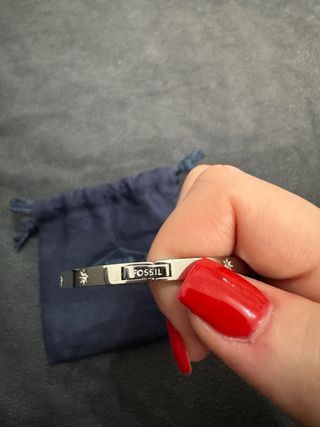 Elegante bracciale da donna Fossil in acciaio inossidabile, con un design raffinato. - Decorato con un motivo di stelle. - Finitura lucida e resistente. - Chiusura a pulsante. Nuovo.