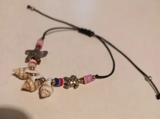 Delizioso braccialetto con elementi marini. - Ciondoli a forma di stella marina e tartaruga. - Piccole conchiglie naturali. - Perline colorate e argentate.