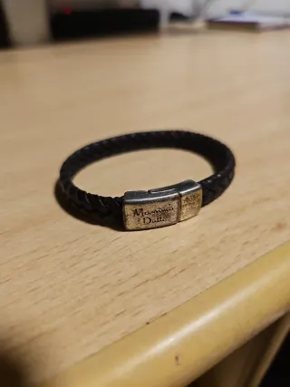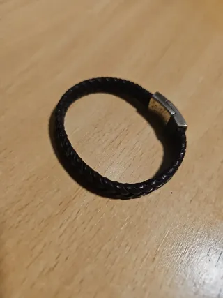Bracciale in pelle intrecciata con chiusura in metallo. Design elegante e moderno. Chiusura a clip argentata.
