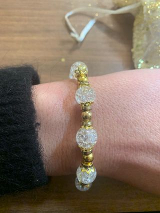 Delicati braccialetti realizzati a mano, perfetti per aggiungere un tocco di eleganza. - Perline trasparenti e iridescenti. - Elemento centrale decorato.