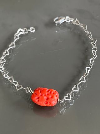 Braccialetto Argento 925 Cuore Corallo Rosso