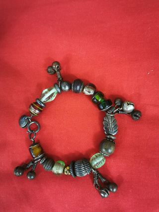 Bellissimo braccialetto in legno d'ulivo. - Ciondoli in metallo e corda