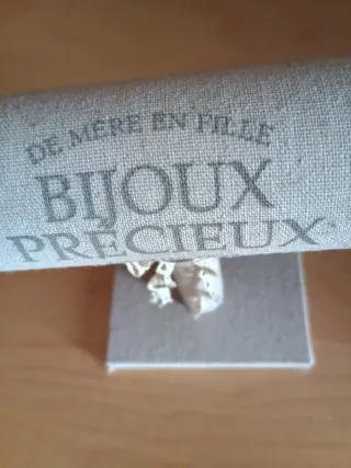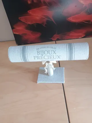Elegante porta braccialetti in tessuto, ideale per organizzare i tuoi gioielli. - Design con scritte DE MERE EN FILLE BIJOUX PRÉCIEUX. - Finitura a righe grigie.