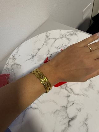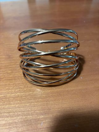 Elegante bracciale rigido con design intrecciato. - Finitura color oro. - Stile moderno e sofisticato.