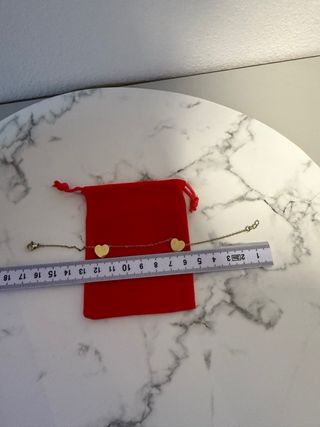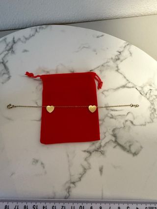 Elegante bracciale con due ciondoli a forma di cuore. - Design a doppio cuore. - Finitura color oro.