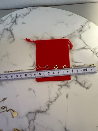 Elegante bracciale con un design a cuori. - Finitura dorata lucida. - Chiusura a moschettone. - Catena regolabile.