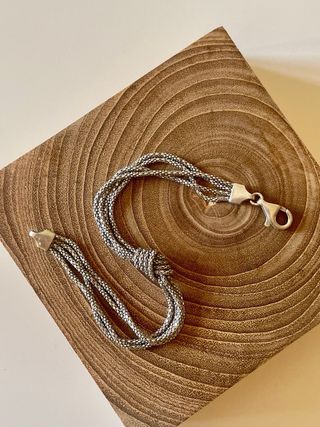 ✨Elegante bracciale vintage composto da quattro fili. - Realizzato in argento 925. - Design con nodo centrale. - Chiusura a moschettone. - Condizioni vintage ottime - Lunghezza totale: 19 cm Formula visto e piaciuto✨