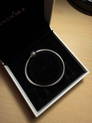 Elegante bracciale Pandora in argento, perfetto per aggiungere un tocco di classe al tuo stile. Quasi mai indossato, come nuovo. - Design a maglia snake. - Chiusura a cilindro con logo inciso.