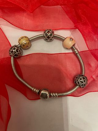 Bellissimo bracciale Pandora con 5 charm cm 18 - Charm con dettagli traforati. - Charm color beige.